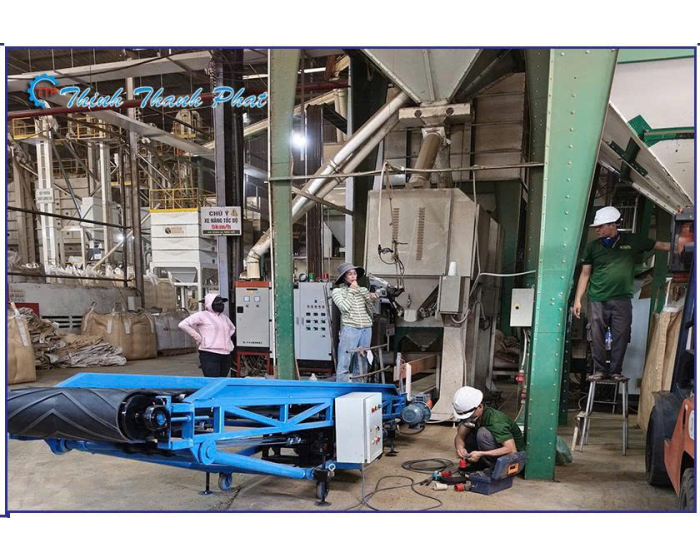 Sau một thời gian dài tiếp xúc với bụi nông sản (như bụi lúa, bụi tiêu) và ma sát lớn, dây băng tải có thể bị mòn hoặc giãn. Bụi bẩn lọt vào các ổ bi, con lăn và hộp số nếu không được vệ sinh, bôi trơn định kỳ sẽ gây ra tiếng ồn và làm giảm hiệu suất động cơ.