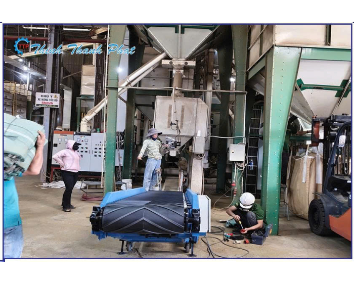 Đây là nơi băng tải hoạt động mạnh mẽ nhất để luân chuyển gạo từ dây chuyền đóng gói sang kho lưu trữ và từ kho ra các xe container xuất khẩu. Nó đóng vai trò huyết mạch trong việc duy trì dòng chảy hàng hóa thông suốt tại các vựa lúa lớn.