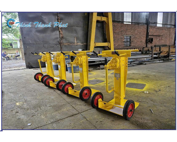 Thiết bị này thường được chế tạo từ thép chịu lực cường độ cao với cấu trúc ống lồng vững chắc, cho phép thay đổi chiều cao một cách linh hoạt thông qua hệ thống bánh răng và tay quay hoặc kích thủy lực. Điểm chịu lực chính là phần đế thép bản lớn, giúp phân tán áp lực lên mặt đất, ngăn chặn tình trạng lún khi làm việc trên bề mặt đất mềm hoặc nhựa đường nóng. Toàn bộ thân chân chống thường được sơn tĩnh điện hoặc mạ kẽm để chống lại sự ăn mòn của thời tiết và các tác động hóa học trong môi trường kho bãi. Cơ chế khóa an toàn tích hợp giúp chân chống giữ vững vị trí ngay cả dưới tải trọng cực lớn lên đến hàng chục tấn.