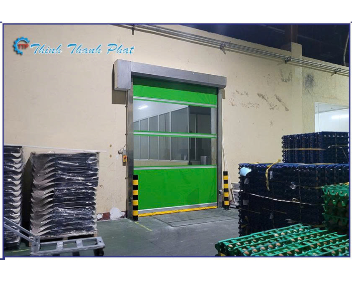 Đây là ứng dụng điển hình để ngăn thất thoát nhiệt. Cửa cuốn nhanh đóng vai trò như một màng ngăn cách nhiệt linh hoạt, giúp ổn định nhiệt độ kho đông và ngăn hiện tượng đọng sương, đóng băng tại cửa kho.