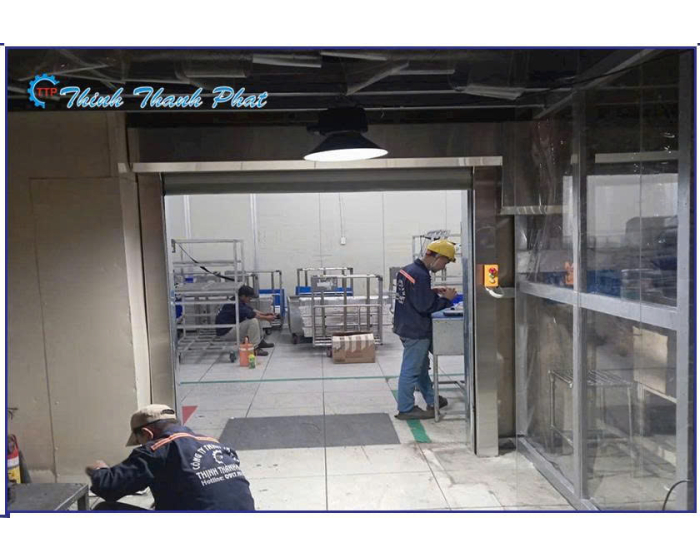 Nhờ tốc độ đóng mở "chớp nhoáng", thời gian cửa mở ra chỉ ở mức tối thiểu, giúp ngăn chặn hiệu quả việc thất thoát hơi lạnh (đối với kho lạnh) hoặc xâm nhập hơi nóng từ bên ngoài. Điều này trực tiếp làm giảm tải cho hệ thống điều hòa và máy lạnh công nghiệp, giúp doanh nghiệp tiết kiệm đến 30-40% chi phí điện năng hàng tháng. Đồng thời, cửa tạo ra một rào cản vật lý ngăn bụi bẩn, côn trùng, tạp chất và mùi hôi từ môi trường bên ngoài tràn vào khu vực sản xuất.