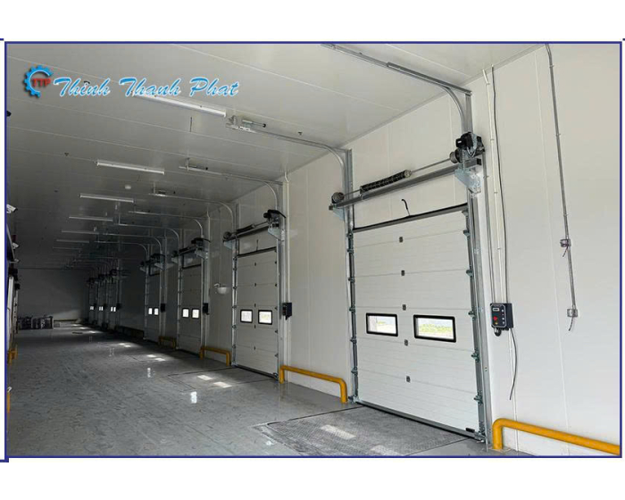 - Khu vực Dock Leveler Kho Lạnh: Cửa được kết hợp với Dock Seal Túi Khí Cách nhiệt và Dock Leveler có cầu nhiệt để tạo ra một "phòng trung gian" hoàn toàn kín khí, duy trì chuỗi lạnh không bị đứt đoạn ngay cả trong quá trình bốc dỡ hàng hóa.
