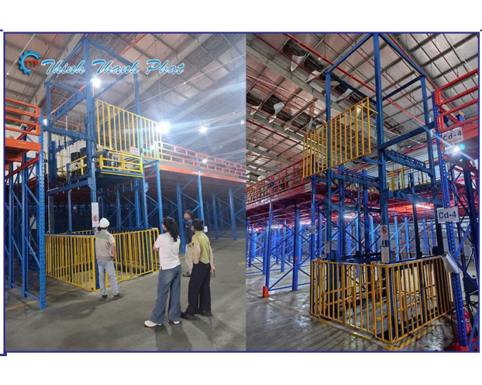 Trong các nhà máy sản xuất linh kiện và máy móc: Vận chuyển các pallet nguyên liệu, khuôn mẫu nặng hoặc các bán thành phẩm giữa khu vực sản xuất và kho lưu trữ tầng gác lửng.