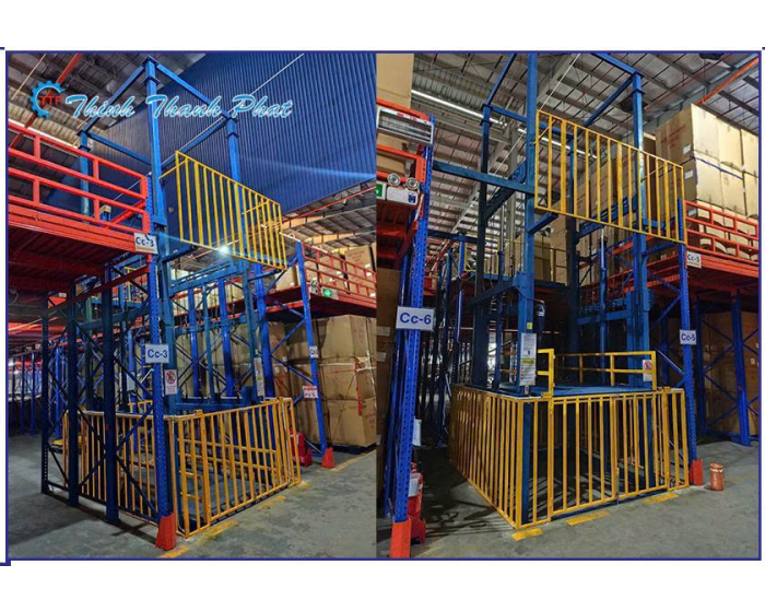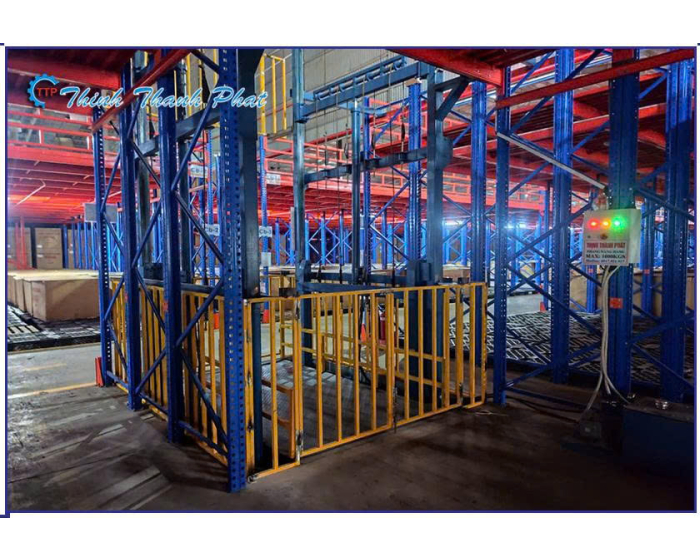 Trong các kho bãi Logistics và trung tâm phân phối lớn: Vận chuyển các pallet hàng hóa siêu nặng hoặc các kiện hàng máy móc công trình. Diện tích bàn nâng lớn cho phép xe nâng tay hoặc xe nâng điện đi thẳng vào cabin để xếp dỡ hàng.