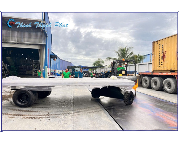 Hàng hóa được chất đầy lên thùng mooc kéo, với tải trọng được quy định của xe kéo.